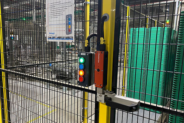 The large robots that carry out high-speed and precision work are each surrounded by a safety fence so that employees do not come into contact with them and possibly injure themselves seriously. If an error occurs or the robot has to be stopped for any other reason, it is important that the safety of the employees remains the top priority. As long as the system is still in motion, access must therefore be denied.