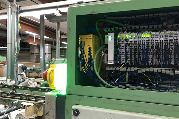 Implementing an electronic series connection of safety components in a laminating line from the 1990s - this was the task that zfrcontrol faced together with BERNSTEIN as part of a retrofit at a customer in the East Westphalia region. In the course of this modernisation, one or two challenges had to be solved. But in the end, the system not only meets the most modern requirements for safety technology, but now also provides extensive diagnostic data for easy troubleshooting and analysis.