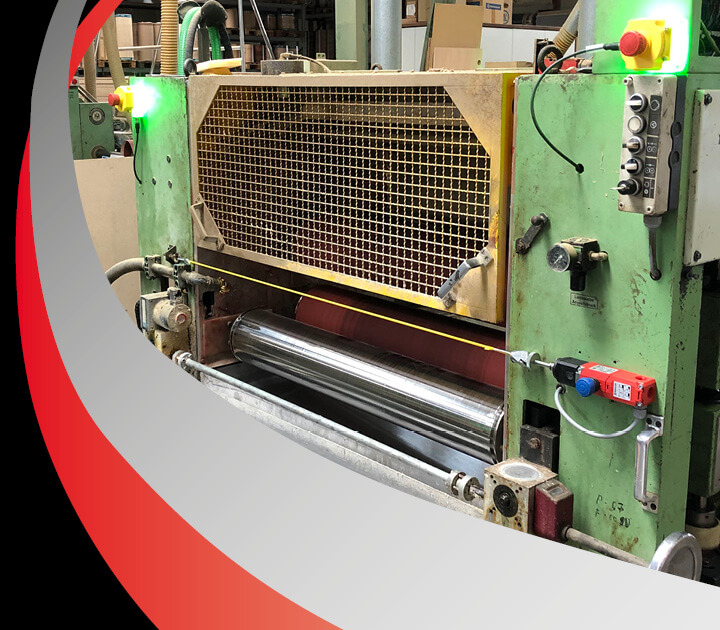 Darin wird eine Kaschieranlage aus den 1990er-Jahren mit moderner Sicherheitstechnik von BERNSTEIN ausgestattet – ohne ihren Grundaufbau zu verändern.