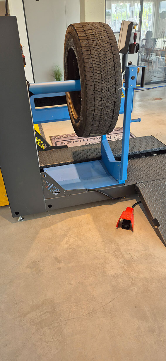 Die Wahl fiel daraufhin auf einen BERNSTEIN Zustimmfußschalter, der speziell für anspruchsvolle industrielle Anwendungen entwickelt wurde. Der Fußschalter wird in der Bear-Cut genutzt, um den Reifen sicher weiterzudrehen, sobald dieser aufgespannt und in oberer Position ist. Das Betätigen des Fußschalters ermöglicht eine sichere Bewegung des Reifens, ohne den Reifen dabei mit den Händen berühren zu müssen. Diese Lösung minimiert die Verletzungsgefahr erheblich. „Darüber hinaus waren insbesondere die Gehäuse des Fußschalters, die den rauen industriellen Bedingungen standhalten, ausschlaggebend für unsere Wahl auf den BERNSTEIN Fußschalter“, so Mark Berendsen.